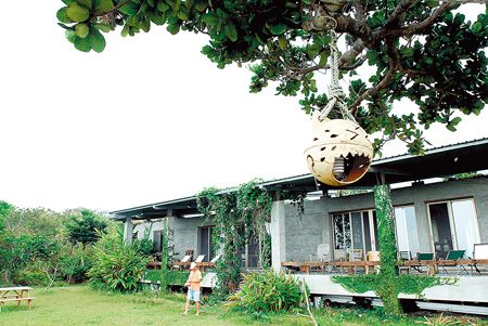 走過華麗年代的民宿風(fēng)格,近年漸漸出現(xiàn)回歸在地特色、外型低調(diào)的民宿建筑。例如臺東都蘭的“來吹涼風(fēng)”,開車順著山路蜿蜒而上,沿途找不到任何指示牌,約十分鐘后,才會見到一棟不起眼的建筑,“因為不想讓大自然留下太多的視覺負(fù)擔(dān)”,老板郭宗興說。