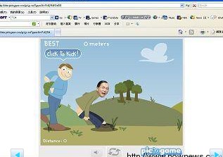 還有一款游戲則是設(shè)計讓陳水扁半露臀部,由網(wǎng)友點擊陳水扁身后的人物,點擊后就會將腳踢向陳水扁的屁股,而且陳水扁還會往前飛出去,落地后還會評斷游戲者的踢人力道,甚至還顯示陳水扁被踢飛的距離,也令不少網(wǎng)友莞爾。