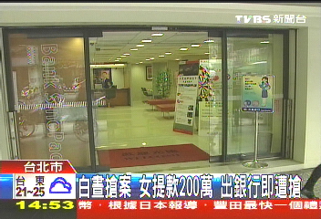 中新網(wǎng)2月2日電 據(jù)臺灣TVBS報道,臺北市龍江路上的永豐銀行,下午發(fā)生搶案,一名女子從銀行走出來,隨即被歹徒盯上搶走約167萬元。