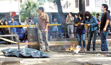 中新網(wǎng)6月10日電 據(jù)臺(tái)灣《中國(guó)時(shí)報(bào)》報(bào)道,臺(tái)灣高雄縣市交界的崗山仔地區(qū)9日中午連續(xù)傳出槍響,水果攤商翁文定為攤位糾紛,持槍在市場(chǎng)朝同行黃春生近距離開槍,隨后騎車往崗山仔公園,打手機(jī)給女性友人告知“我要自殺了”,就朝太陽(yáng)穴開槍當(dāng)場(chǎng)斃命,黃姓男子則身中四槍被送往醫(yī)院急救,性命垂危。