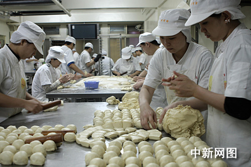 走進(jìn)詹益恭負(fù)責(zé)的阿明師老店的工廠里,記者了解到太陽餅制作的全過程,也終于知道太陽餅之所以在味道和口感上與眾不同的“秘訣”。太陽餅制作共五道工序。在按照傳統(tǒng)配方選取中筋面粉,低筋骨后,要將面鞣到合適的軟硬度。接著分成雞蛋大小的面團后加入“酥”,這個所謂的“酥”是讓面皮酥軟的關(guān)鍵材料。接著搟皮要層次夠,且力道均勻,裹入內(nèi)餡的牛舌狀面皮厚度需非常平均。在包入麥芽糖餡的時候完全依靠師傅的經(jīng)驗和細(xì)心。包多包少,手法的生熟都會影響到最后出爐成餅的質(zhì)量。最后烘烤的時候,根據(jù)餅的大小,調(diào)節(jié)溫度和時間。時間上的控制直接影響到麥芽餡的沸騰和蒸發(fā)程度,從而影響到口感。烤的時間過長則餡兒太硬,不夠的話又不夠香酥。