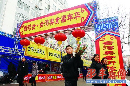 中新網3月5日電 據青島市臺辦網站消息,3月1日,第21屆糖球會在青島海云庵正式拉開大幕,30萬人首日熱逛糖球會。在靠近糖球廣場的蒙化路專門辟出一條臺灣美食街,久負盛名的臺北士林夜市的20余種臺灣美食慕名前來趕會。此次參會的臺灣美食很多原料都是專門從臺灣運來的。其中將在上海世博會臺灣館中參展的“度小月擔仔面”和“蚵仔煎”也現身糖球會,市民在家門口就可品嘗到這兩種“世博美食”。