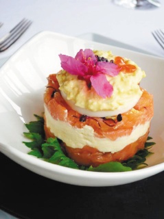 春秋烏來渡假酒店也在櫻花季節推出櫻花季套餐,用櫻花入菜,像櫻花煙熏鮭魚塔,以煙熏鮭魚加入洋蔥碎、酸豆及日本四季紅,中間夾入酸奶與奶油起司泥,酸甜可口,新推櫻花甜點也很有特色。