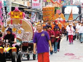 中新網(wǎng)4月13日電 據(jù)臺灣《聯(lián)合報(bào)》報(bào)道,媽祖誕辰前夕,云林縣西螺福興宮被絡(luò)繹不絕的信眾擠得水泄不通,熱鬧滾滾;加上大甲媽祖遶境活動即將展開,不少信眾也提前探路參拜,福興宮附近街區(qū)常是炮聲不斷、鑼鼓喧天。