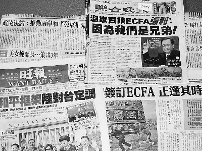 今天下午出版的《聯(lián)合晚報(bào)》在頭版頭條以《溫家寶談ECFA讓利:因?yàn)槲覀兪切值堋窞轭},圖文并茂報(bào)道了全國人大閉幕和溫家寶總理的記者會(huì)。《聯(lián)合報(bào)》特派記者汪莉絹因?yàn)樵谟浾邥?huì)上向溫總理提出了有關(guān)兩岸的問題,溫家寶總理對(duì)此進(jìn)行了詳細(xì)解答,為此引發(fā)了島內(nèi)媒體的廣泛報(bào)道和熱烈討論。《聯(lián)合晚報(bào)》還在第二版幾乎用了整版,進(jìn)行相關(guān)報(bào)道。