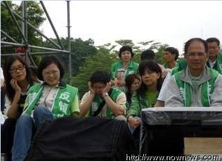 至于謝長廷,也因為精神不濟,先到后臺稍做休息,而靜坐舞臺上,僅剩黨主席蔡英文和游錫堃率領部分黨公職坐在臺上,聽著新聞關心時事。此外,現場也可發現,部分“立委”因靜坐一宿,體力已超出負荷,紛紛在舞臺上打起瞌睡,有的人甚至悄悄地消失不見了。
