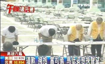 馬英九開口說話前先道歉,鞠躬足足有12秒。不但自己身兼數(shù)職,還擔(dān)任司儀,到了新開部落,還和災(zāi)民蹲在地上一起燒紙錢;現(xiàn)在馬英九不只是握手,更不吝惜用擁抱來撫慰災(zāi)民的心,遇到鄉(xiāng)長反應(yīng)災(zāi)情,馬英九一站就是好幾分鐘,聽得很仔細(xì)。除了道歉,馬英九更具體提出解決方案。