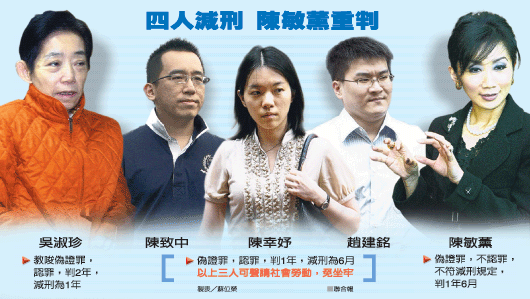 法界人士分析,陳致中另涉扁家洗錢案,趙建銘還被控內線交易,既然他們對偽證案選擇認罪,最好的因應之道是盡速執行完畢;否則如果洗錢案、內線交易案被判徒刑確定,將失去以社會勞動取代入監的機會。