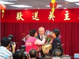 中新網10月14日電 據臺灣“今日新聞”報道,國民黨18全黨代表大會即將于本周六(17日)登場,新舊主席將進行交接,國民黨14日下午特別為將卸任的國民黨主席吳伯雄舉辦歡送茶會,國民黨秘書長詹春柏在歡送茶會上強調,馬英九已決定繼續借重吳伯雄,他相信在馬吳兩人合作之下,黨務、政務將可順利推動。
