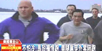 馬英九的堅(jiān)持要戶外運(yùn)動(dòng),可苦了美國的隨扈們,幾名外國特勤也被迫一大早起床跟著跑。