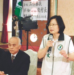 “臺北工作難找?還不如回鄉做村長!”民進黨彰化縣黨部指出,目前有超過百名候選人要以民進黨籍參選,蔡英文十分認同,她說民進黨中央青年部、婦女部與各地方黨部都要繼續努力吸引年輕黨員。