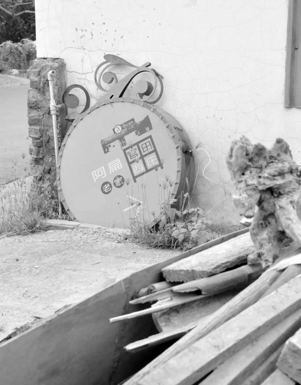 往前再幾分鐘的車程,就到陳水扁的老家西莊村。拐進一條無名的小巷,巷口的電線桿上掛有“官田西莊、阿扁老家”的綠色招牌,已是舊跡斑斑。到了另一個巷口,一個圓環形的“阿扁老家”招牌被扔在廢墟水溝邊上,而不是高高掛起。