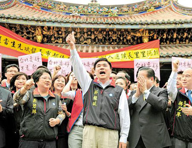 大批民眾拿著“臺北要‘郝’,不要‘蘇’”的標語,力挺郝龍斌,“凍蒜(當選)”聲不絕于耳,緊接著郝龍斌用閩南話演說,“我要向神明報告,過去三年誠心和認真為臺北市打拼,祈求神明保佑,讓我繼續為市民服務!