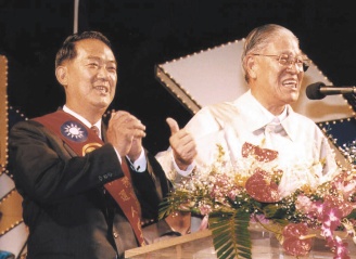 李登輝(右)與親民黨主席宋楚瑜(左),曾經情同父子,也曾經反目成仇,兩人政壇交手數十年。(臺灣《聯合報》資料圖)
