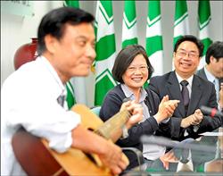 中新網(wǎng)6月3日電 據(jù)臺(tái)灣《自由時(shí)報(bào)》報(bào)道,民進(jìn)黨二日成立“五都”選戰(zhàn)小組,由前秘書(shū)長(zhǎng)吳乃仁擔(dān)任召集人,為年底“五都選舉”擬定策略。黨主席蔡英文在歡送秘書(shū)長(zhǎng)蘇嘉全參選大臺(tái)中市長(zhǎng)記者會(huì)上,兩人“答嘴鼓”。蘇嘉全還拿著吉他對(duì)著蔡英文唱情歌,蔡英文尷尬地笑了出來(lái)。