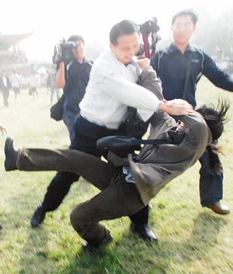 據(jù)“中央社”報(bào)道,陳水扁11日被學(xué)生嗆聲,“國(guó)安局”隨扈依規(guī)定排除陳情學(xué)生的抗議動(dòng)作,但因疑似使出“過(guò)肩摔”,遭國(guó)民黨團(tuán)質(zhì)疑未依比例原則。國(guó)民黨團(tuán)聲援被摔學(xué)生,并質(zhì)疑隨扈連女學(xué)生也不放過(guò),甚至出現(xiàn)疑似襲胸動(dòng)作,非常不妥,學(xué)生可考慮提出訴訟。