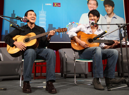 據(jù)“中央社”報(bào)道,馬英九穿著牛仔褲和Polo衫和王力宏合唱英文歌曲《I Understand》。馬英九說(shuō),這是他高三時(shí)花了一百七十多元買的吉他,練的第一首歌曲。王力宏則從未聽(tīng)過(guò)此曲,他笑著說(shuō),先前還熱心找了一些“老歌”,沒(méi)想到在馬英九眼里全是“新歌”。