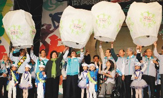 謝長廷總部動員一千個高雄長昌會及33個后援會,晚會場地涌入5萬人潮,現(xiàn)場并升祈福天燈。民進(jìn)黨五位“立委”候選人在“母雞”謝長廷帶領(lǐng)下同臺拉抬選情,高雄市長陳菊也到場助陣。