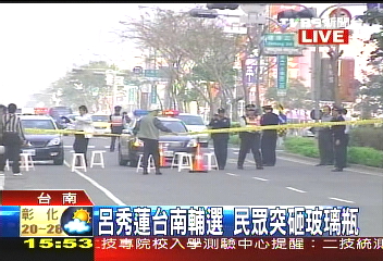 呂秀蓮在臺南沿街拉票險被玻璃瓶砸中(組圖)