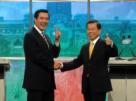 最后一場辯論會,雙方步步為營,都想奪得先機,上次官方主辦政見發(fā)表會時,馬英九開場白先向民眾報告棒球的賽況,預(yù)祝臺灣參賽隊旗開得勝,這次電視辯論,馬英九先發(fā)表申論,沒有再提棒球賽事,謝長廷立即現(xiàn)學(xué)現(xiàn)賣,一開始就播報棒球賽況,將馬一軍。