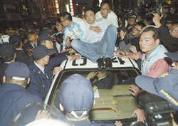 眼見已發(fā)生警民沖突,臺北警方立刻提高處理層次,先由中山分局出動各派出所待命警力,并調(diào)派保安大隊五十名警察趕到現(xiàn)場,利用優(yōu)勢警力,把警車團團圍住。