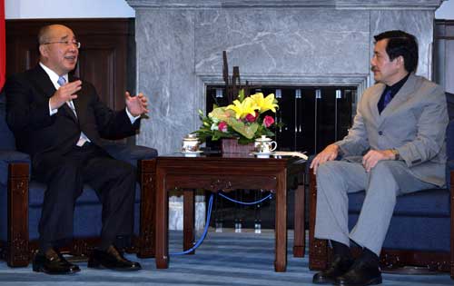中新網(wǎng)6月1日電 馬英九五月三十一日晚間接見(jiàn)中國(guó)國(guó)民黨主席吳伯雄等中國(guó)國(guó)民黨大陸訪問(wèn)團(tuán)成員。馬英九說(shuō),吳伯雄此行圓滿成功,肯定吳伯雄的貢獻(xiàn),慰勉吳伯雄的辛勞。