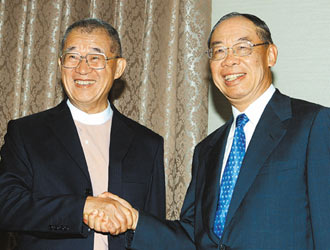 王建煊(左)拜會錢復(右)。(圖:臺灣《聯合晚報》)