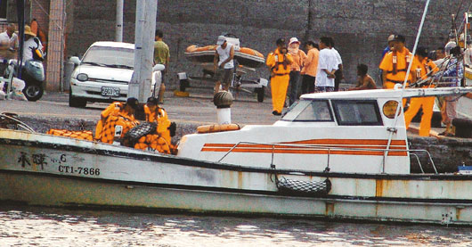 臺“海巡署”安檢人員加強安檢,登船仔細檢查防止限制對象出海。(圖:臺灣《聯(lián)合報》)