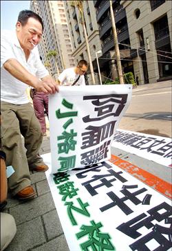 針對陳水扁洗錢案,一位臺灣民眾帶著抗議布條在陳水扁住所表達憤怒與不滿。(來源:臺灣“自由時報”)