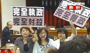 據臺灣“中廣新聞網”報道,民進黨女“立委”管碧玲、林淑芬和陳亭妃由于不滿在委員會提案被擋,22日上午在委員會上再度占據發言臺抗議國民黨處理方式。