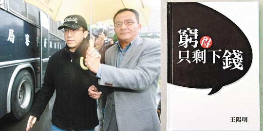 陳水扁兒子陳致中30日前往臺北看守所,探視再度遭羈押的父親陳水扁,帶了一本名為《窮得只剩下錢》的宗教心靈書籍。圖片來源:臺灣《聯合報》