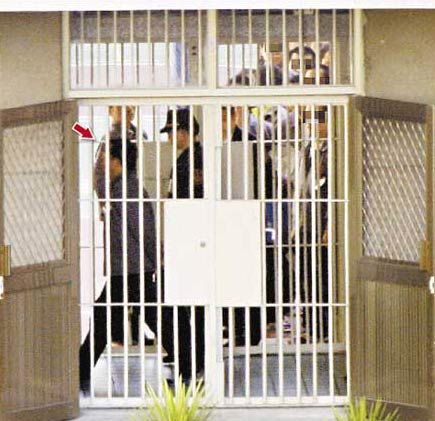 所方將整個戒護區的中央通道凈空,其他放完風的被關押人員被擋在一旁等候,就像扁以前出門警方進行交通管制一樣,不少人紛紛探頭,爭相目睹扁淪為囚犯的模樣。