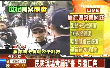 中新網(wǎng)1月19日電 據(jù)臺灣TVBS報道,19日上午9點半,針對龍?zhí)逗湍细鄱蟊装高M行準備程序庭,6名檢方激戰(zhàn)3位律師。一開庭扁律師提出三策略,卻全遭法官蔡守訓(xùn)當庭駁回,后來檢察官當庭追加罪嫌,引發(fā)律師不滿,現(xiàn)場爆發(fā)雙方口角。
