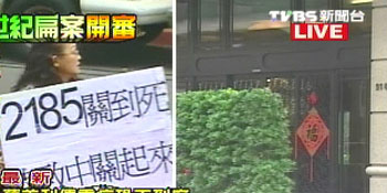 據臺灣TVBS報道,扁子陳致中、兒媳黃睿靚一身黑衣,搭乘出租車抵達法院。許多群眾在場不斷地對他們嗆聲,有婦人高舉“2185(陳水扁在看守所中的編號)關到死,陳致中關起來”牌子抗議,警方絲毫不敢大意。