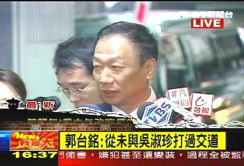 記者問:“關于吳淑珍陳報狀所述,3000萬的政治獻金,是由您這邊支付的嗎?”郭臺銘說:“我回答,沒有。”記者再問:“沒有捐款給扁家3000萬嗎?”郭臺銘重申:“沒有。”記者接著問:“那怎么會傳出這樣的說法?”郭臺銘面露無奈地說:“我也不曉得。”