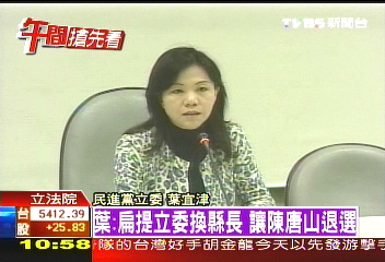 人在臺北看守所的陳水扁,再度介入民進黨臺南縣長選舉!“立委”葉宜津證實23日她去看扁時,阿扁提議要挺她選縣長,若當選辭去“立委”之后,阿扁要來補選這席“立委”,這樣的交換條件,葉宜津說,她沒有答應。葉宜津表示,“(扁說)我這一席‘立委’空出來以后讓他選,陳唐山就會知難而退,陳水扁提出這一點以后,我就告訴他這不是我能決定的。”