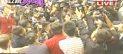 臺"立院"再爆沖突 民進黨搶麥克風扔文件(圖)