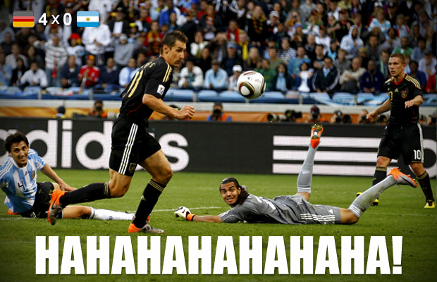 但是令阿根廷人沒有想到的是,僅隔一天,自己的球隊也遭遇世界杯上第二大比分的輸球(1958年他們曾1比6不敵捷克斯洛伐克),巴西媒體也適時跳出來回擊自己的夙敵。(王朝)