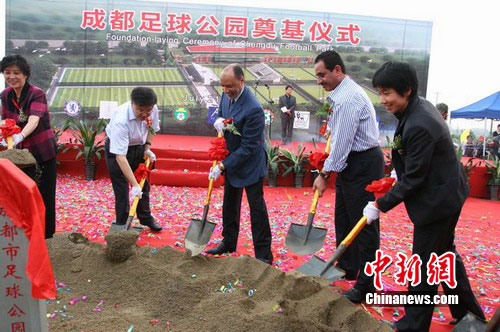 中新網成都7月21日電(記者 楊杰) 21日下午,預計投資3000萬元人民幣的成都足球公園正式奠基。亞足聯主席哈曼專程蒞臨現場,參加了奠基儀式。
