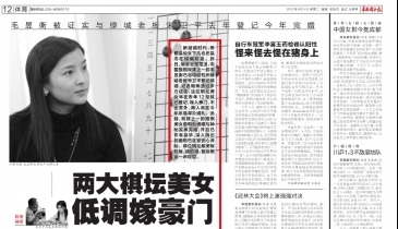 新結婚時代,即便是仙女下凡也還是向往婚姻殿堂。昨日,某專業報報道,中國圍棋雙姝之一的毛昱衡已與中超杭州綠城老板宋衛平登記結婚,記者隨即通過多方證實,這位棋壇美女早在去年12月就已登記,嫁入豪門,不出意外,兩人將在今年年底舉辦婚禮。此前,雙姝之一的圍棋美女唐莉也被爆與神秘富豪完婚,并且已懷有身孕,深入簡出的唐莉已在家安心養胎。兩位棋壇最美嫁的嫁,婚的婚,留給棋迷一聲嘆息。