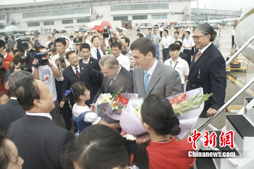 陪同并護送青奧會會旗的中國香港奧委會主席霍震霆、南京市市長季建業等11名官員、貴賓同機入境。