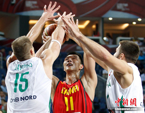 中場休息體力得到恢復(fù)的中國隊球員在下半場伊始重新找回比賽感覺,王仕鵬、易建聯(lián)、劉煒先后搶分成功,兩隊又回到了同一起跑線。本節(jié)比賽進行5分鐘左右后,中國隊投籃命中率再度下降,立陶宛隊則連得11分,拉大比分差距。第三節(jié)比賽結(jié)束時,中國隊以51比64落后。