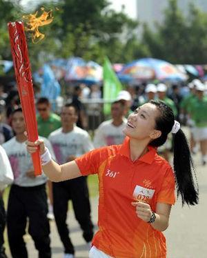 譚晶在亞運火炬傳遞深圳站中(資料圖)
