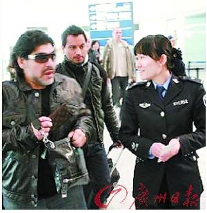 昨天上午9時,馬拉多納乘坐的德國漢莎航空公司航班抵達(dá)首都國際機場3號航站樓,約一個小時后,馬拉多納出現(xiàn)在眾人的視線內(nèi)。他一改南非世界杯上西裝革履的打扮,身著黑夾克、戴著墨鏡,顯得精神矍鑠。阿根廷“球王”熱情地和現(xiàn)場的歡迎者打招呼,隨后手捧一束紅玫瑰,登上了機場的擺渡車進(jìn)入貴賓休息室,并在那里舉行了簡短的新聞發(fā)布會。馬拉多納說:“我剛剛過了50歲生日,我感到非常高興,也非常幸福。我是一個熱愛家庭的人,我會把我的全部都貢獻(xiàn)給我的家庭。”馬拉多納也對中國足球表示了祝福,他:“在足球領(lǐng)域,中國是沉睡的雄獅,我相信有一天中國足球必然會騰飛。”