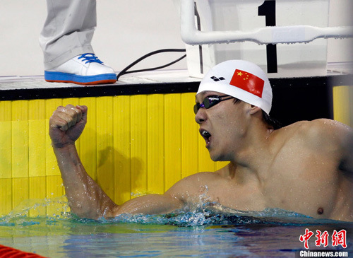他同時還對與自己鄰道的“世界蛙王”北島康介表示尊重,“我很崇拜北島康介,和他一起比賽很興奮。”對于當晚的比賽表現,謝智稱“很滿意”,他給自己打了95分,他說扣掉的5分是在出發方面。