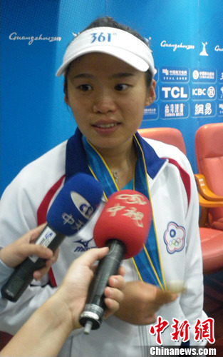 中新網廣州11月22日電(記者 張羽)在22日舉行的廣州亞運會網球女子雙打決賽上,中華臺北組合詹詠然、莊佳容2比0擊敗隊友張凱貞、謝淑薇,獲得冠軍,為中華臺北代表團再添一枚金牌。莊佳容在賽后的新聞發布會上表示,能夠在亞運賽場上奪金真的很開心,大陸是“福地”。