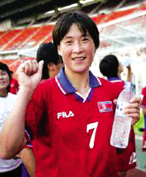 今年30歲的李金淑是朝鮮“4.25”體育團(軍隊體育團)的女足隊員,在朝鮮是家喻戶曉的足球明星。由于戰績出色,李金淑獲得朝鮮體育運動員的最高榮譽“人民體育工作者”稱號。朝鮮政府還給予她高級轎車和住宅獎勵。