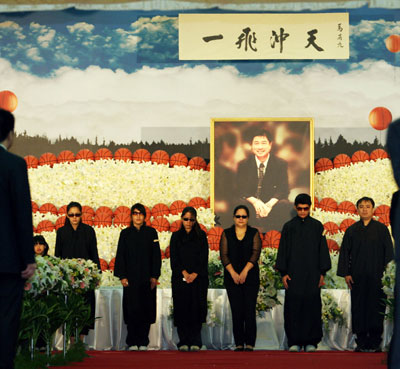 據臺灣媒體報道,錢一飛的靈堂由三百顆籃球布置而成,正中央懸掛國民黨參選人馬英九所題的“一飛沖天”挽聯,充分顯示出錢一飛在戰場上拼戰不懈、戰績彪炳和一生精彩的籃球精神。