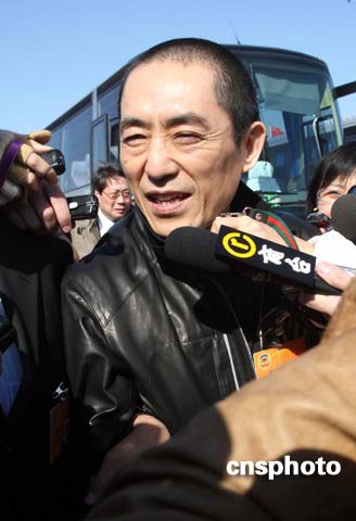 前來(lái)出席十一屆全國(guó)政協(xié)一次會(huì)議的張藝謀甫一下車,就被眼尖的記者發(fā)現(xiàn),他的身邊迅速形成了一個(gè)巨大的包圍圈。面對(duì)記者圍堵,張藝謀起初一言不發(fā),后見“形勢(shì)不妙”,便停下腳步。