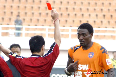 此時,正在青島隊后場的外援保羅尤如吃錯藥一般,儼然武圣關羽“靈魂附體”,從后場狂奔50米沖到事發(fā)地點,分別與遼寧隊幾名本土球員以及外援格里菲斯發(fā)生爭執(zhí),甚至還施展鎖喉大法,雙手卡住格里菲斯的咽喉,頗具千里走單騎,過五關斬六將之風。主裁當即將這位勇若張飛、豪比關羽的黑面大俠請出了綠茵場。